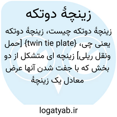 {twin tie plate} [حمل ونقل ریلی] زینچه ای متشکل از دو بخش که با جفت شدن آنها عرض معادل یک زینچۀ تخت به دست می آید و از آن در جایی که ریل های مجاور بسیار به هم نزدیک می شوند، به ویژه در دوراهه ها، استفاده میشود