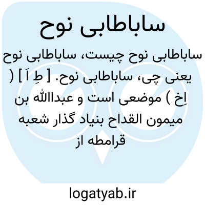 ساباطابی نوح. [ طِ اَ ] ( اِخ ) موضعی است و عبداﷲ بن میمون القداح بنیاد گذار شعبه قرامطه از اسمعیلیه پس از آنکه عسکرمکرم را ترک گفت دو سرای بدانجا اختیار کرد و اکنون بجای یکی مسجدی بنا کرده اند و دیگری ویران است. ( فهرست ابن الندیم ص 264 ).