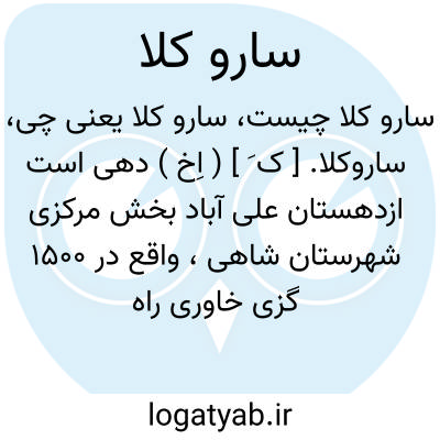 ساروکلا. [ ک َ ] ( اِخ ) دهی است ازدهستان علی آباد بخش مرکزی شهرستان شاهی، واقع در 1500 گزی خاوری راه شوسه شاهی به ساری، 3 هزارگزی شمال خاوری ساری. دشت، هوای آن معتدل و مرطوب، و آب آن از رودخانه سیاه رود و چشمه. محصول آن، برنج، غلات، توتون، پنبه، نیشکر و ابریشم است. 2000 تن سکنه دارد که بشغل زراعت و کارگری در کارخانه ها اشتغال دارند. از صنایع دستی محلی زنان بافتن پارچه های ابریشمی و کرباس است. راه شوسه فرعی و دبستان دارد. ( از فرهنگ جغرافیائی ایران ج 3 ).