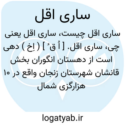 ساری اقل. [ اُ ق ُ ] ( اِخ ) دهی است از دهستان انگوران بخش قانشان شهرستان زنجان واقع در 10 هزارگزی شمال قانشان و یک هزارگزی راه مالرو عمومی. کوهستانی و سردسیر، آب آن از رودخانه قزل اوزن و محصول آن غلات و برنج است، 158 تن سکنه دارد که از طایفه شاهسون هستند و به زراعت اشتغال دارند. از صنایع دستی گلیم و جاجیم بافی در آن معمول است.راه مالرو دارد. ( از فرهنگ جغرافیائی ایران ج 2 ).