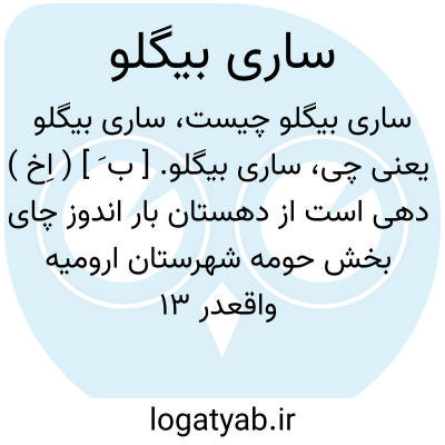 ساری بیگلو. [ ب َ ] ( اِخ ) دهی است از دهستان بار اندوز چای بخش حومه شهرستان ارومیه واقعدر 13 هزارگزی جنوب خاوری ارومیه و 4 هزارگزی خاور راه شوسه ارومیه به مهاباد. جلگه ای و هوای آن معتدل مالاریائی، آب آن از شهر چای. محصول آن غلات، توتون، چغندر، انگور و حبوبات است، 170 تن سکنه دارد که به زراعت اشتغال دارند. از صنایع دستی جوراب بافی در آن معمول است. راه ارابه رو دارد و در تابستان میتوان اتومبیل بدان برد. ( از فرهنگ جغرافیائی ایران ج 4 ).
