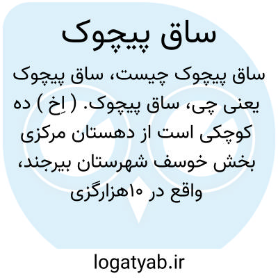 ساق پیچوک. ( اِخ ) ده کوچکی است از دهستان مرکزی بخش خوسف شهرستان بیرجند، واقع در 10هزارگزی جنوب خاوری خوسف. کوهستانی، و هوایش معتدل، و آبش از قنات است، 4 تن سکنه دارد که به زراعت اشتغال دارند. راه آن مالرو است. ( از فرهنگ جغرافیائی ایران ج 9 ).