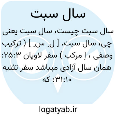 سال سبت. [ ل ِ س ِ ] ( ترکیب وصفی، اِ مرکب ) سفر لاویان 25:3: همان سال آزادی میباشد سفر تثنیه 31:10: که سال هفتم است و میبایست از فلاحت زمین دست کشید و محصول خودروی آن را برای فقرا و غربا و مرغان و حیوانات صحرا گذاشت. سفر لاویان 25:11 - 7: مقصود از این مطلب اولاً، تقویت زمین، ثانیاً، محافظت نمودن حیوانات. ثالثاً، تربیت نمودن قوم که بر خدای قادر مطلق توکیل کامل داشته باشد. رجوع به قاموس کتاب مقدس شود.