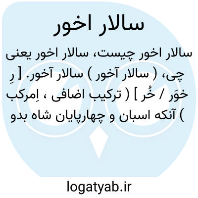 ( سالار آخور ) سالار آخور. [ رِ خوَر / خُر ] ( ترکیب اضافی، اِمرکب ) آنکه اسبان و چهارپایان شاه بدو سپرده شده است. آنکه تعهد تربیت و نگاهداری ستوران شاه را بعهده دارد. سرمهتر. رئیس مهتران. رئیس اصطبل: