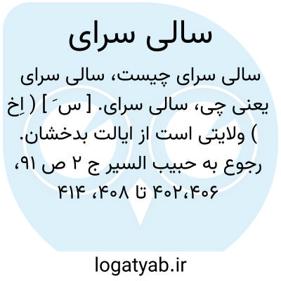 سالی سرای. [ س َ ] ( اِخ ) ولایتی است از ایالت بدخشان. رجوع به حبیب السیر ج 2 ص 91، 402،406 تا 408، 414 و 602 و ج 4 ص 21، 52 و 304 شود.