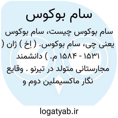 سام بوکوس. ( اِخ ) ژان ( 1531 - 1584 م. ) دانشمند مجارستانی متولد در تیرنو. وقایع نگار ماکسیملین دوم و رودلف دوم.