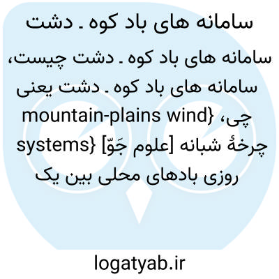 {mountain-plains wind systems} [علوم جَوّ] چرخۀ شبانه روزی بادهای محلی بین یک کوه یا رشته کوه و دشت های مجاور یا پیرامونی آن در دوره هایی که شارش همدیدی ضعیف است