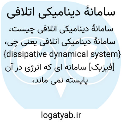 {dissipative dynamical system} [فیزیک] سامانه ای که انرژی در آن پایسته نمی ماند، ولی به کمک عامل خارجی می توان اتلاف انرژی آن را جبران کرد