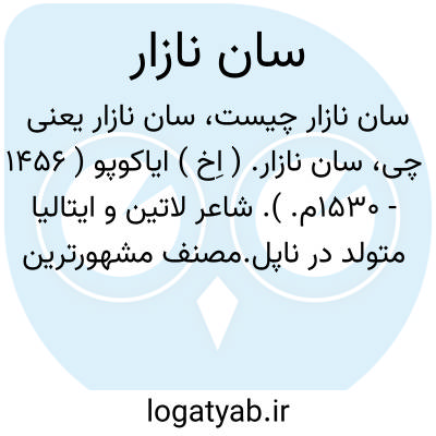 سان نازار. ( اِخ ) ایاکوپو ( 1456 - 1530م. ). شاعر لاتین و ایتالیا متولد در ناپل.مصنف مشهورترین رمان دهاتی آرکادیا که به شعر و به نثر و به شعر لاتین است.