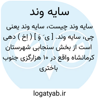 سایه وند. [ ی َ وَ ] ( اِخ ) دهی است از بخش سنجابی شهرستان کرمانشاه واقع در 10 هزارگزی جنوب باختری کوزران و یک هزارگزی راه فرعی کوزران. هوای آن سرد و دارای 80 تن سکنه است. آب آنجا از چشمه و چاه تأمین میشود. محصول آن غلات، حبوب، دیم، لبنیات. شغل اهالی زراعت و گله داری و راه آن مالرو است، در تابستان میتوان اتومبیل برد. ( از فرهنگ جغرافیایی ایران ج 5 ).