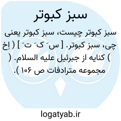 سبز کبوتر. [ س َ ک َ ت َ ] ( اِخ ) کنایه از جبرئیل علیه السلام. ( مجموعه مترادفات ص 106 ).