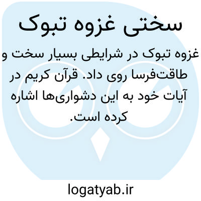 [ویکی فقه] سختی غزوه تبوک (قرآن). آیاتی از قرآن از دشواریهای غزوه تبوک سخن گفته است.