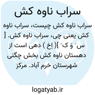 سراب ناوه کش. [ س َ وَ ک َ ]( اِخ ) دهی است از دهستان ناوه کش بخش چگنی شهرستان خرم آباد. مرکز دهستان واقع در 10 هزارگزی خاور سراب دوره و کنار شمالی راه اتومبیل رو خرم آباد بکوهدشت. هوای آنجا معتدل و دارای 240 تن سکنه است. آب آنجا از سراب ناوه کش تأمین می شود. محصول آنجا غلات، حبوب، لبنیات و شغل اهالی زراعت و گله داری است. صنایع دستی زنان سیاه چادربافی. ساکنین از طایفه فتح اللهی بوده چادرنشین میباشند. ( از فرهنگ جغرافیایی ایران ج 6 ).