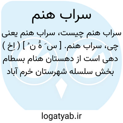 سراب هنم. [ س َ هَُ ن ُ ] ( اِخ ) دهی است از دهستان هنام بسطام بخش سلسله شهرستان خرم آباد واقع در 20 هزارگزی خاور الشتر و 20 هزارگزی خاور راه شوسه خرم آباد به الشتر. هوای آنجا سرد ودارای 360 تن سکنه است. آب آنجا از رودخانه هنام تأمین می شود. محصول آنجا غلات، حبوب، لبنیات، پشم و شغل اهالی زراعت و گله داری. راه آن مالرو است. دارای دبستان است. ساکنین از طایفه حسنوند بوده و زمستان را بقشلاق میروند. ( از فرهنگ جغرافیایی ایران ج 6 ).