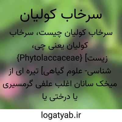 {Phytolaccaceae} [زیست شناسی- علوم گیاهی] تیره ای از میخک سانان اغلب علفی گرمسیری یا درختی یا درختچه ای با پانزده سرده و 100 گونه و گل آذین خوشه ای