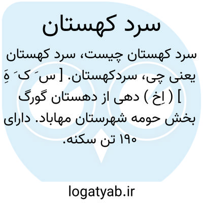 سردکهستان. [ س َ ک َ هَِ ] ( اِخ ) دهی از دهستان گورگ بخش حومه شهرستان مهاباد. دارای 190 تن سکنه. آب آن از رود خورخوره و محصولاتش غلات و توتون و حبوب است. ( از فرهنگ جغرافیائی ایران ج 4 ).