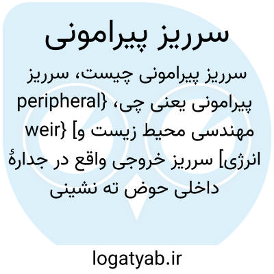 {peripheral weir} [مهندسی محیط زیست و انرژی] سرریز خروجی واقع در جدارۀ داخلی حوض ته نشینی استوانه ای که جریان خروجی از روی آن به بیرون منتقل می شود