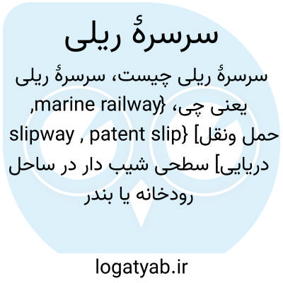 {marine railway, slipway , patent slip} [حمل ونقل دریایی] سطحی شیب دار در ساحل رودخانه یا بندر که بر روی آن ریل نصب می شود و شناور پس از قرار گرفتن بر روی پایه هایی بر روی این ریل به بالا یا به پایین حرکت داده می شود