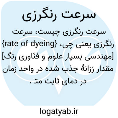 {rate of dyeing} [مهندسی بسپار علوم و فنّاورى رنگ] مقدار رَزانۀ جذب شده در واحد زمان در دمای ثابت متـ. سرعت رَزش