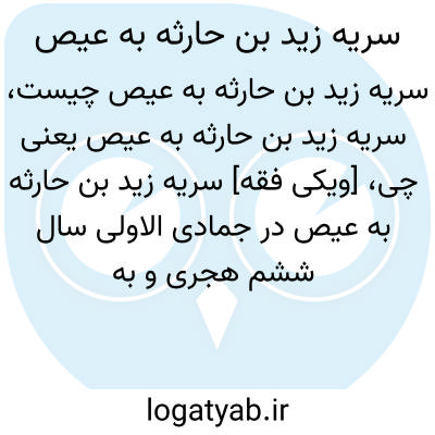 [ویکی فقه] سریه زید بن حارثه به عیص در جمادی الاولی سال ششم هجری و به دستور پیامبر (صلی الله علیه و آله وسلّم)، زِید بن حارِثه را به همراه یکصد و هفتاد سوار به سوی کاروان قریش اعزام فرمود. و با پیروزی مسلمانان به سرانجام رسید.