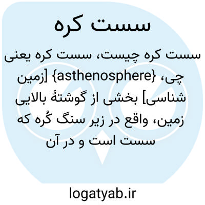 ↑ «سست کره» هم ارزِ «استنوسفر» ( به انگلیسی: asthenosphere )؛ منبع: گروه واژه گزینی. جواد میرشکاری، ویراستار. ( ۱۳۷۶ - ۱۳۸۵ ). فرهنگ واژه های مصوب فرهنگستان. تهران: انتشارات فرهنگستان زبان و ادب فارسی. شابک ۹۷۸ - ۹۶۴ - ۷۵۳۱ - ۷۷ - ۱ ( ذیل سرواژهٔ asthenosphere )