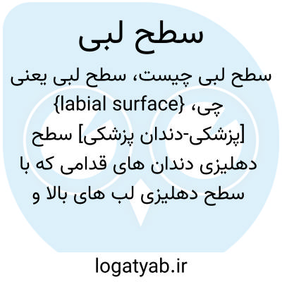 {labial surface} [پزشکی-دندان پزشکی] سطح دهلیزی دندان های قدامی که با سطح دهلیزی لب های بالا و پایین در تماس است