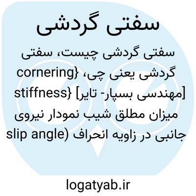 {cornering stiffness} [مهندسی بسپار- تایر] میزان مطلق شیب نمودار نیروی جانبی در زاویه انحراف (slip angle ) صفر