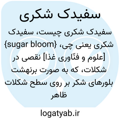 {sugar bloom} [علوم و فنّاوری غذا] نقصی در شکلات، که به صورت برنهشت بلورهای شکر بر روی سطح شکلات ظاهر می شود و ناشی از رطوبت بالا است