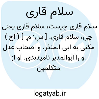 سلام قاری. [ س َ م ِ ] ( اِخ ) مکنی به ابی المنذر. و اصحاب عدل او را ابوالمدبر نامیدندی. او از متکلمین مجبره است. وقتی غلام و کنیزک خویش را در کاری ناشایست یافت وگفت وای برشما این چیست !! غلام گفت قضائی از خدای متعال. سلام گفت چون تو را بقضا و قدر خدای ایمان است ترا آزاد کردم و کنیزک را نیز بزنی تو دادم. ( از ابن الندیم ).