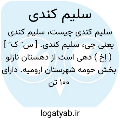 سلیم کندی. [ س َ ک َ ] ( اِخ ) دهی است از دهستان نازلو بخش حومه شهرستان ارومیه. دارای 100 تن سکنه. آب آن از چشمه و جویبار عربلو. محصول آنجا غلات، توتون، کشمش، چغندر، حبوبات. شغل اهالی زراعت. صنایع دستی آنان جوراب بافی است. ( از فرهنگ جغرافیائی ایران ج 4 ).