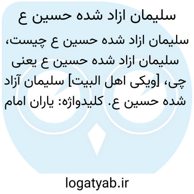 [ویکی اهل البیت] سلیمان آزاد شده حسین ع. کلیدواژه: یاران امام حسین علیه السلام، شهدای کربلا، سلیمان بن رزین