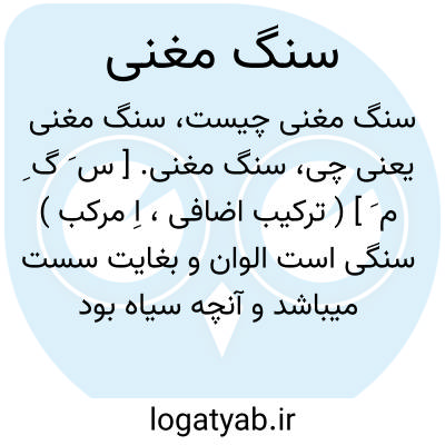 سنگ مغنی. [ س َ گ ِ م َ ] ( ترکیب اضافی، اِ مرکب ) سنگی است الوان و بغایت سست میباشد و آنچه سیاه بود بسرخی زند و نقطه های سفید بر آن باشد و شیشه گران بکار برند و آنرا سنگ برکان هم گویند. ( برهان ). سنگی است الوان بغایت نرم و سست که شیشه گران شیشه را بدان سپید کنند. ( آنندراج ). ( اصطلاح شیشه گران ) اسم مغنیساست. ( تحفه حکیم مؤمن ).
