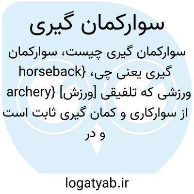 {horseback archery} [ورزش] ورزشی که تلفیقی از سوارکاری و کمان گیری ثابت است و در آن شرکت کنندگان سوار بر اسب در میدانی بزرگ از مقابل هدف ها می گذرند و در حالت یورتمۀ کامل به هدف تیر می اندازند