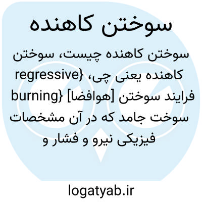 {regressive burning} [هوافضا] فرایند سوختن سوخت جامد که در آن مشخصات فیزیکی نیرو و فشار و سطح سوختن کاهش می یابد