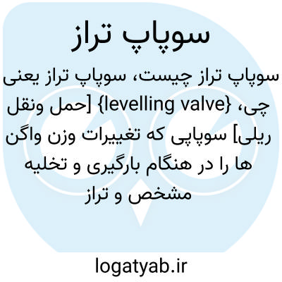 {levelling valve} [حمل ونقل ریلی] سوپاپی که تغییرات وزن واگن ها را در هنگام بارگیری و تخلیه مشخص و تراز واگن را با توجه به این تغییرات حفظ می کند