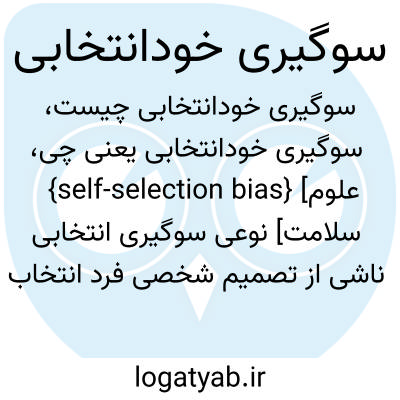 {self-selection bias} [علوم سلامت] نوعی سوگیری انتخابی ناشی از تصمیم شخصی فرد انتخاب شده در مطالعه