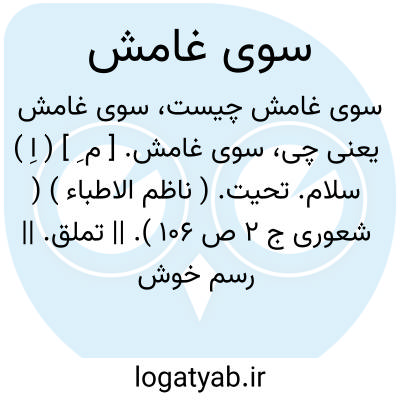 سوی غامش. [ م ِ ] ( اِ ) سلام. تحیت. ( ناظم الاطباء ) ( شعوری ج 2 ص 106 ). || تملق. || رسم خوش آمدگویی. ( ناظم الاطباء ).