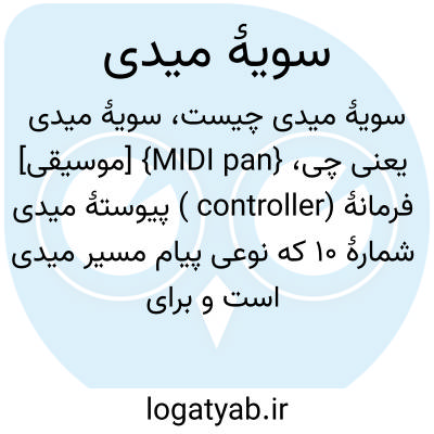 {MIDI pan} [موسیقی] فرمانۀ (controller ) پیوستۀ میدی شمارۀ 10 که نوعی پیام مسیر میدی است و برای واپایش تنظیم پهنه در یک مسیر میدی به کار می رود