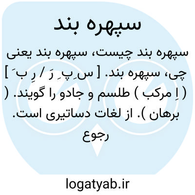 سپهره بند. [ س ِپ ِ رَ / رِ ب َ ] ( اِ مرکب ) طلسم و جادو را گویند. ( برهان ). از لغات دساتیری است. رجوع به فرهنگ دساتیر و رجوع به سپهربند شود.