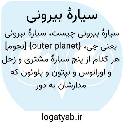 {outer planet} [نجوم] هر کدام از پنج سیارۀ مشتری و زحل و اورانوس و نپتون و پلوتون که مدارشان به دور خورشید بزرگ تر از مدار مریخ است