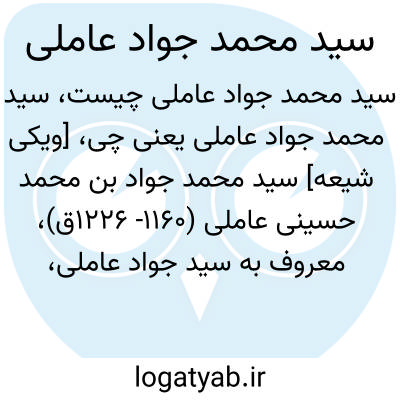 [ویکی شیعه] سید محمد جواد بن محمد حسینی عاملی (۱۱۶۰- ۱۲۲۶ق)، معروف به سید جواد عاملی، از اهالی جبل عامل، فقیه و محدّث اوایل قرن سیزدهم هجری و نویسنده کتاب فقهی مفتاح الکرامه. او در دوره مرجعیت وحید بهبهانی به کربلا رفت و نزد سید علی طباطبایی (صاحب ریاض) شاگردی کرد.