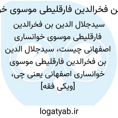 [ویکی فقه] سیدجلال الدین بن فخرالدین فارقلیطی موسوی خوانساری اصفهانی، عالم فاضل در اصفهان می باشد.
