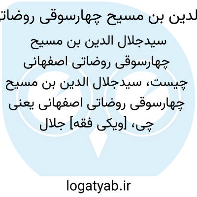 [ویکی فقه] جلال الدین بن مسیح چهارسوقی روضاتی، عالم فاضل و نوه صاحب روضات می باشد.