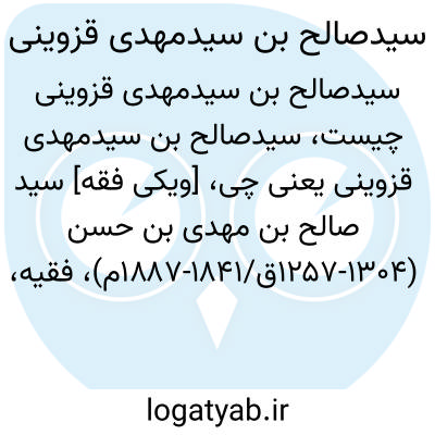 [ویکی فقه] سید صالح بن مهدی بن حسن (۱۲۵۷-۱۳۰۴ق/۱۸۴۱-۱۸۸۷م)، فقیه، ادیب، شاعر و مؤلف و از افراد سرشناس آل قزوینی بود.