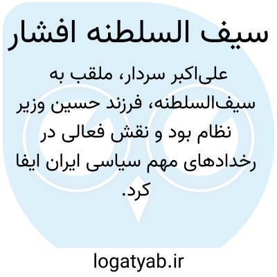 علیاکبر سردار، ملقب به سیفالسلطنه، فرزند حسین وزیر نظام بود و نقش فعالی در رخدادهای مهم سیاسی ایران ایفا کرد. از جمله فعالیتهای برجسته او، مشارکت در کودتای ۲۸ مرداد بود که در آن سیفالسلطنه افشار به عنوان یکی از اعضای کلیدی نقشآفرینی کرد. اطلاعات دقیقی درباره تاریخ تولد وی در دست نیست، اما مشخص است که تحصیلات ابتدایی خود را در خراسان گذراند و سپس برای ادامه تحصیل به روسیه سفر کرد. در آنجا، در یکی از مدارس نظامی شهر پطروگراد آموزش دید. پس از فارغالتحصیلی، به ایران بازگشت و فعالیت خود را در قزاقخانه آغاز کرد و در مدت کوتاهی به مقام سرتیپ دوم و سپس میرپنج ارتقا یافت. بعدها احمدشاه قاجار او را با لقب سیفالسلطنه مفتخر کرد.