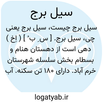 سیل برج. [ س ِ ب ُ ] ( اِخ ) دهی است از دهستان هنام و بسطام بخش سلسله شهرستان خرم آباد. دارای 180 تن سکنه. آب آن از چشمه ها. محصول آنجا غلات، حبوبات، لبنیات و پشم می باشد. شغل اهالی زراعت و گله داری است. سکنه اش از طایفه حسنوند بوده و زمستان رابه قشلاق میروند. ( از فرهنگ جغرافیائی ایران ج 6 ).