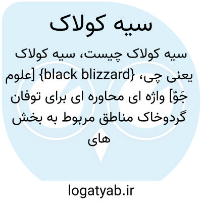 {black blizzard} [علوم جَوّ] واژه ای محاوره ای برای توفان گردوخاک مناطق مربوط به بخش های جنوبی مرکز امریکا