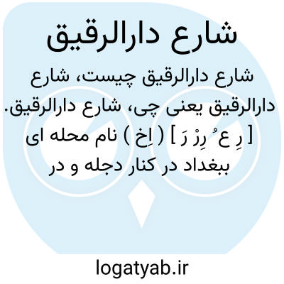 شارع دارالرقیق. [ رِ ع ُ رِرْ رَ ] ( اِخ ) نام محله ای ببغداد در کنار دجله و در قدیم آنجا برده می فروختند و در جانب غربی متصل به حریم الطاهری واقع بود و بازاری داشت. ابومحمد رزق اﷲبن عبدالوهاب التمیمی متوفی بسال 488 هَ. ق. درباره آن گوید: