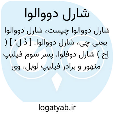 شارل دووالوا. [ دُ ل ُ ] ( اِخ ) شارل دوفلوا. پسر سوم فیلیپ متهور و برادر فیلیپ لوبل. وی بسال 1270 م. تولد و بسال 1325 م. وفات یافت.عنوان امپراطور روم شرقی ( بیزانس ) باو تعلق گرفت و مدعی تاج و تخت آراگون ( قلمرو شمال شرقی اسپانیا ) و امپراطوری آلمان گردید.