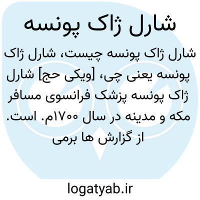 [ویکی حج] شارل ژاک پونسه پزشک فرانسوی مسافر مکه و مدینه در سال 1700م. است. از گزارش ها برمی آید که او در سال های پایانی سده هفدهم م. به عنوان طبیب و داروسازی حاذق در قاهره و بلکه در همه شمال افریقا شناخته می شده است. وی برای درمان بیماری جذامِ جوشوای اول، پادشاهِ حبشه (حک: 1682-1706م.) به این کشور فراخوانده شد و با موافقت کنسول فرانسه در مصر، راهی حبشه گشت.
